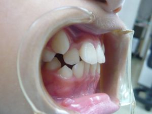 まずは、装置を前歯部に審美的できれいなセラミックブラケットとホワイトワイヤーを使った場合です。